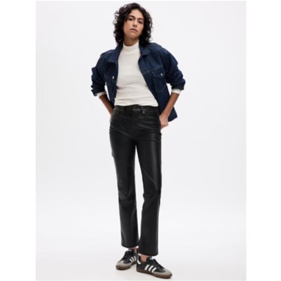 GAP High Rise Vegan Leather Vintage Slim Pants Black Size 6 S Short Petite 358