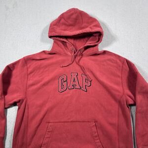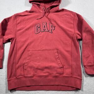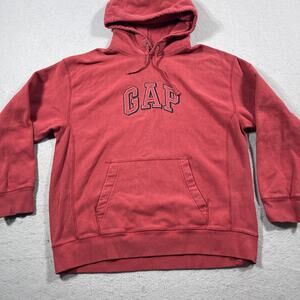 GAP Hoodie Men Large Red Pullover Spell Out Hooded Arch Logo Kangaroo Pocket Y2K