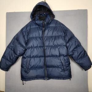 GAP Jacket Mens 2XL XXL Navy Blue Down Puffer Hooded Zip Winter Parka Vintage