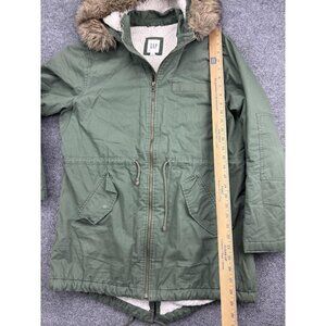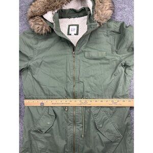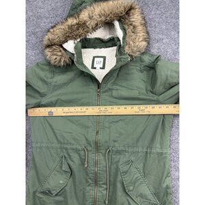 GAP Jacket Womens L Green Sherpa Lined Fishtail Parka Faux Fur Hood Drawstring