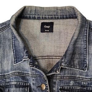 Stylish GAP stretchy jean jacket. Dark blue hue. Ideal for casual wear.