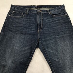 GAP Jean Men 38x30 Authentic Straight Dark Wash Whiskered Preppy Academia