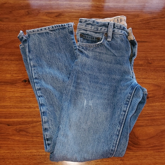 GAP Jeans Straight Fit Blue Adjustable waist The bottoms were slit to go over boots Size 10