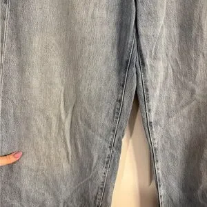 Gap high rise wide leg light denim jeans. Worn a handful of times, I just have long legs & they're too short for the shoes I want to wear them with. One tiiiiiny pull on the right knee (pictured) but no flaws otherwise. I do feel they ran a bit small. Always washed on cold & hung to dry. Smoke free home
