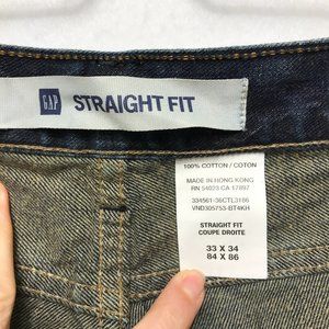 GAP Jean Men's 33 x 34 Blue 1969 Standard Straight Leg Button Fly Dark Wash, Mid rise, 100% cotton. Please see pictures for item condition and measurements. Buy today will ship next business day.