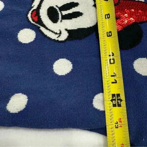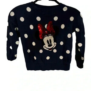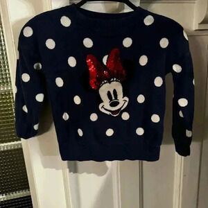 Excellent condition. The sweater is a bright blue with polka dots. It’s has Minnie Mouse with a sequin bow on the front. See photos for measurements