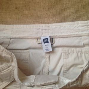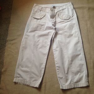 Super cute GAP kahki capris!! Pants have cute angled pockets in front and back with stitch seams that give them a slight puckering affect...really cute on!! Try measure 16" at waist, 21" at hipline and inseam is 20.5" long. Sits lower at hip. Great used condition!! ๏๏.