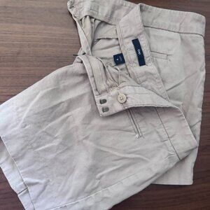 Size 8 Khaki 100% Cotton Barely Worn. Zipper, 2 clasp, one button. Open (but shallow) front AND back pockets.