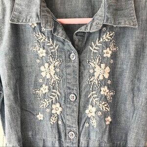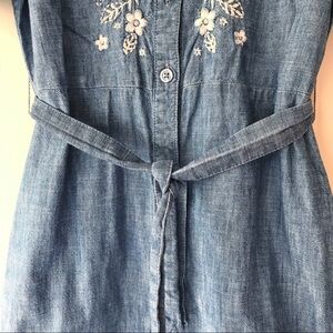 GAP Kids Blue Denim Chambray Shirt Dress with White Floral Embroidery & Belt