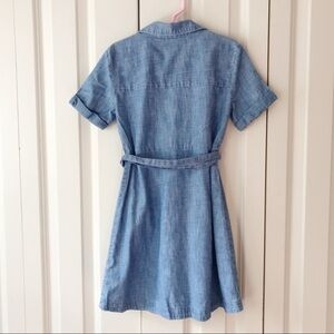 GAP KIDS Blue Denim Chambray Shirt Dress with White Floral Embroidery & Belt in a size small which is a 6/7.