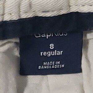The product is a pair of Gap Kids boys blue and white check shorts with a concealed adjustable waist. Made from 100% cotton, these regular fit chino style shorts feature a zip closure and a 8-inch inseam, making them perfect for summer and spring seasons. The multicolor check pattern adds a colorful touch to the wardrobe, while the adjustable waist ensures a comfortable and customized fit for boys who wear size 8 regular. Ideal for walking and school activities, these shorts are a stylish and practical addition to any young boy's clothing collection.