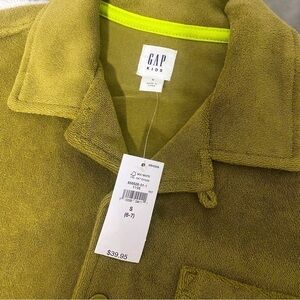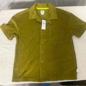 GAP Kids Boys Towel Terry Button-Down Shirt Size Small 6/7 Olive NWT