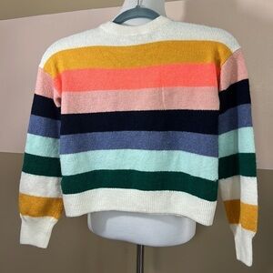 GAP Kids Bright Neon Striped Soft Knit Long Sleeve Crew Neck Sweater Size M
