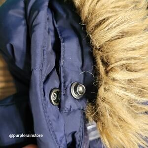 GAP Kids Down Puffer Coat M Faux Fur Trim Hood Navy Outdoor Winter Sledding