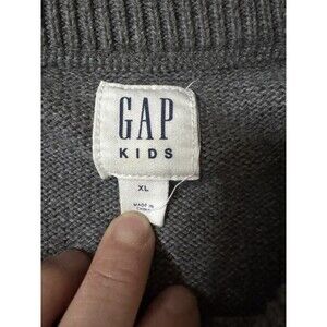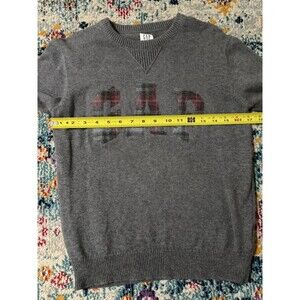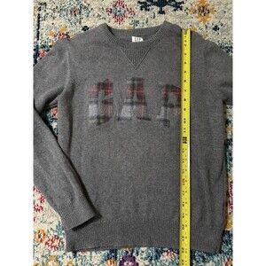 GAP Kids Gray Cotton Tartan Plaid Logo Crewneck Sweater Size XL Festive Xmas