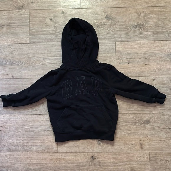 Black on black GAP logo hooded sweatshirt.