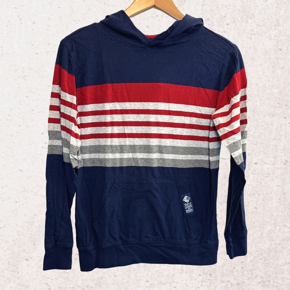 GAP Kids Long Sleeve Striped Hoodie - Navy, Red, Gray