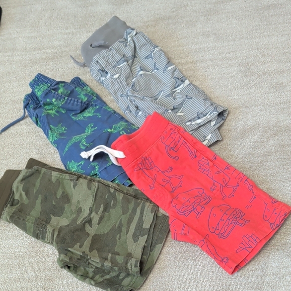 4 gap shorts. all have working pockets. dino and sharks working waist ties, burger and camo faux. burger shorts oranger than in pics. some signs of wear on sharks, see pics but lots of life left. sharks marked xs but measures similar to the 5s