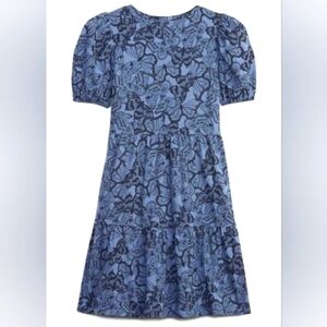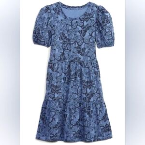 GAP Kids Puff Slv School Dress Blue Butterfly Print Girls LG (10-11 years) NWT