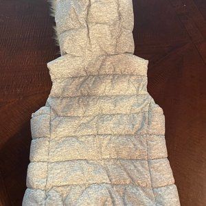 Super cute and stylish GAP Kids small gray fur-accented puffer vest. Perfect for in-between temps.