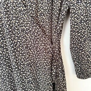 This GAP wrap maxi dress is the definition of easy elegance. Featuring a dainty black and ivory floral print, this lightweight woven dress has a flattering V-neckline, adjustable wrap tie at the waist, and 3/4 length sleeves with slight gathering. The flowy silhouette makes it perfect for everything from workdays to weekend brunches or even casual weddings.
