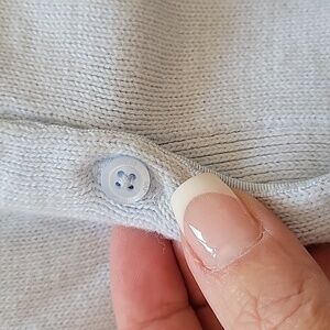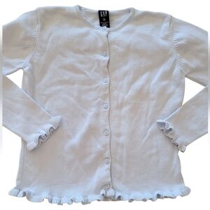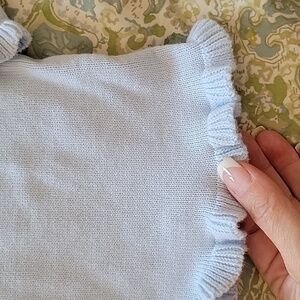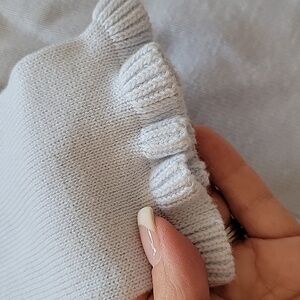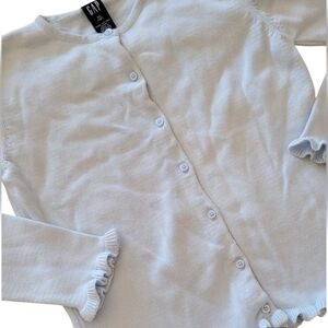 Adorable 100% cotton soft baby blue cardigan with lettuce ruffle hem and cuffs.