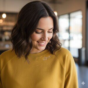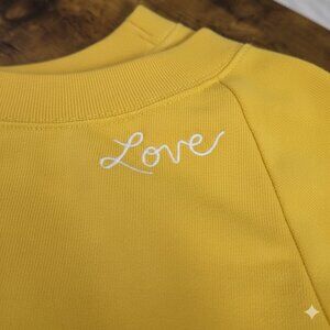 This vibrant yellow sweatshirt features a relaxed fit and full-length sleeves, making it a comfortable choice for casual wear. The round neckline is complemented by a ribbed collar with "Love", adding a stylish touch to the overall design.
