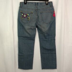 GAP LOW RISE CROPPED STRECH FLORAL EMBROIDERED BLUE WASHED SIZE 8