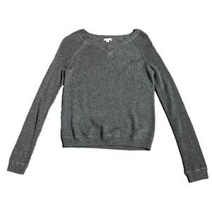 Charcoal Grey Sweater Knit Mesh Open Weave Sleeve Wide Crewneck Pullover Sweater GAP Ladies Dorito Solid Sweater #604572-00