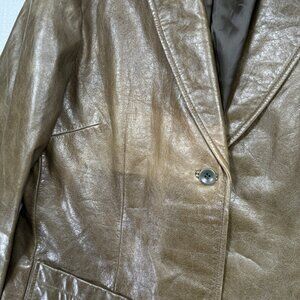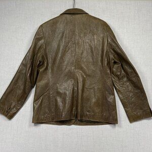 GAP Leather Blazer Brown Long Sleeve Button-Front Jacket Pockets Lined Size XL