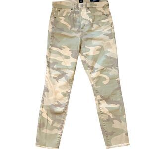 This is a super cute pair of high-waisted GAP skinny jeans in a light beige, muted camo pattern. The fit is a flattering true skinny ankle jean. NWT. 6P/28. These will be so cute paired with a cropped classic black or white tee and combat boots.