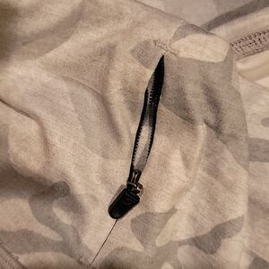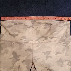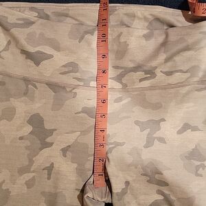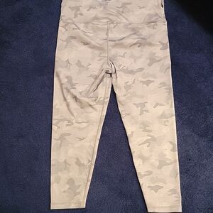 Comfortable leggings with a light gray camo design. Ideal for casual wear. these are in perfect condition. worn once. capri length. zipper pocket in waistband. light greys