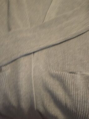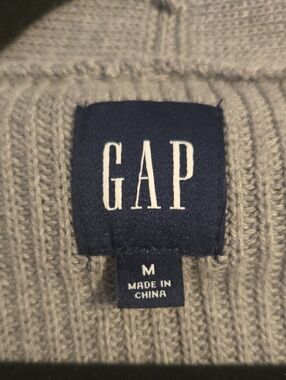 GAP open-front cardigan in light gray. Ribbed knit fabric with a relaxed silhouette. Front patch pockets for simple utility. Soft, lightweight layer for everyday wear.