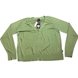 GAP Light Green Linen Blend V-Neck Button-Up Cardigan, Size XL, NWT