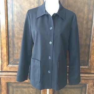 Stylish Black Button Front Coat. Lightweight Cotton/Spandex. Fully Lined. Two Front Pockets and 5 Button Front. Dry Clean Only. Excellent Used Condition. Size 10. Bundle and Save 20%. Scarf Not Included. 🚫No Trades🚫