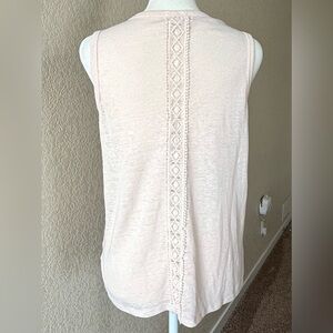 GAP Linen Blend Crochet Lace Tank Top, New Sheer Pink, Size XS