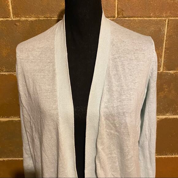 GAP Linen Blend Lightweight Seafoam Green Cardigan Sweater Women's M Medium. Open Front. Pockets. Measurements in Pics. EUC.