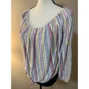 GAP Linen Blend Multi Color Stripe Off the Shoulder Oversized Boho Peasant Top Size M