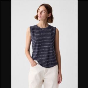 GAP Linen Blend Sleeveless Tank Top Size XXS Navy/White stripes