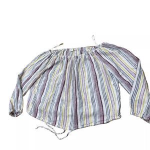 GAP Linen OTS Over The Shoulder Multi Stripe Womens S Retro 90s Coastal Casual S