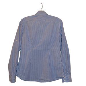 GAP Long Sleeves Cuff Blue White Stripes Button Down Front Ruffled Shirt Women S