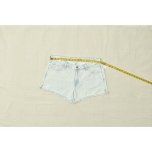 This listing is for a pair of brand new with tags GAP Low Rise Stride Shorts. They are a light wash denim with a classic button and zipper closure. The shorts are a women's size 32. They have a 4-inch inseam and a 16-inch waist, providing a comfortable and flattering fit. The style is versatile for various casual occasions. Made from a blend of cotton and elastane for a comfortable stretch. These shorts are perfect for a classic, everyday look. They are new with original tags attached, ensuring excellent, unworn condition. Please see all photos for a detailed look at the item's condition and measurements. The shorts feature a five-pocket design and belt loops.