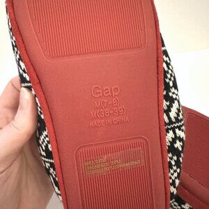 GAP (M) Soft Fair Isle Slippers Knit Faux-Fur Red Black Navy White Size 7 8 7.5