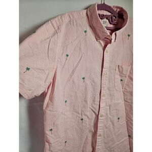 GAP Martini Shirt Mens Large Pink Palm Tree Casual Button Up Short Sleeve XL