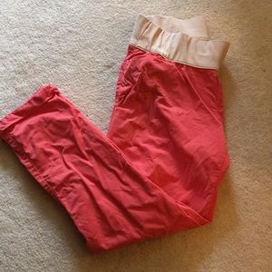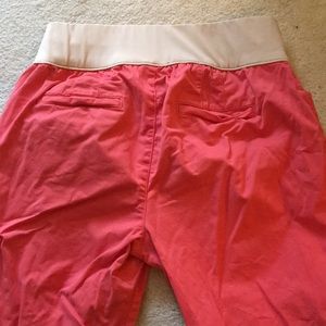 Coral colored GAP maternity Best Girlfriend fit cropped pants. The band is designed to hit below the belly. In great condition and no damage to the fabric.