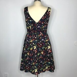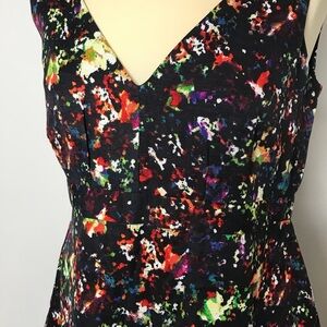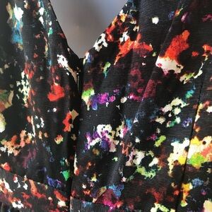 GAP Maternity Dress. Colorful abstract print on black background, gorgeous pleating at bustline. Dress has pockets with front and back v-necklines, zipper back closure.