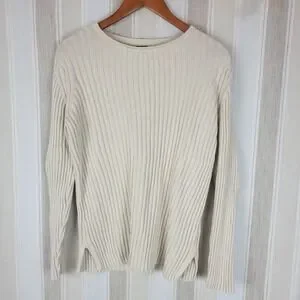 Soft ribbed knit crewneck sweater and pants. Long sleeves with a relaxed fit - cream color
