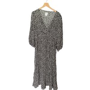 • Style: Midi-length dress with a V-neckline and ¾ sleeves.