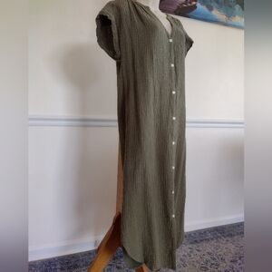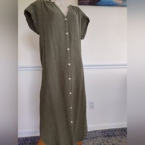 GAP Maxi TALL Crinkle Gauze Button Down short sleeve dress size Small Tall