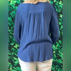 💙 GAP Medium Blue Peasant Blouse – Embroidered V-Neck, Tassel Tie, Size Medium